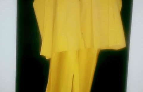 Impermeable amarillo incluye camisola con gorro y pantalón.