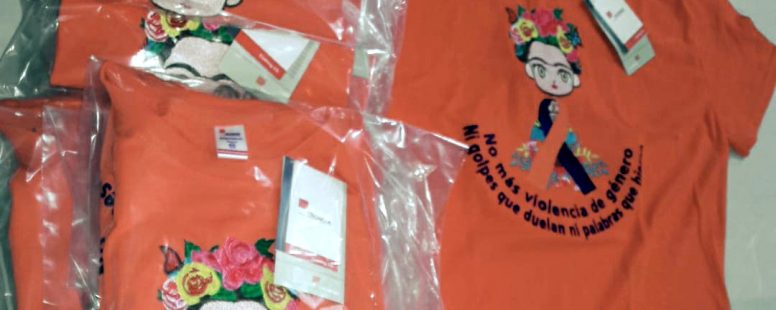 Playera cuello redondo color naranja con bordado enfrente Frida “NO MAS VIOLENCIA DE GENERO” Para Stronger Sureste es un placer crear ideas.